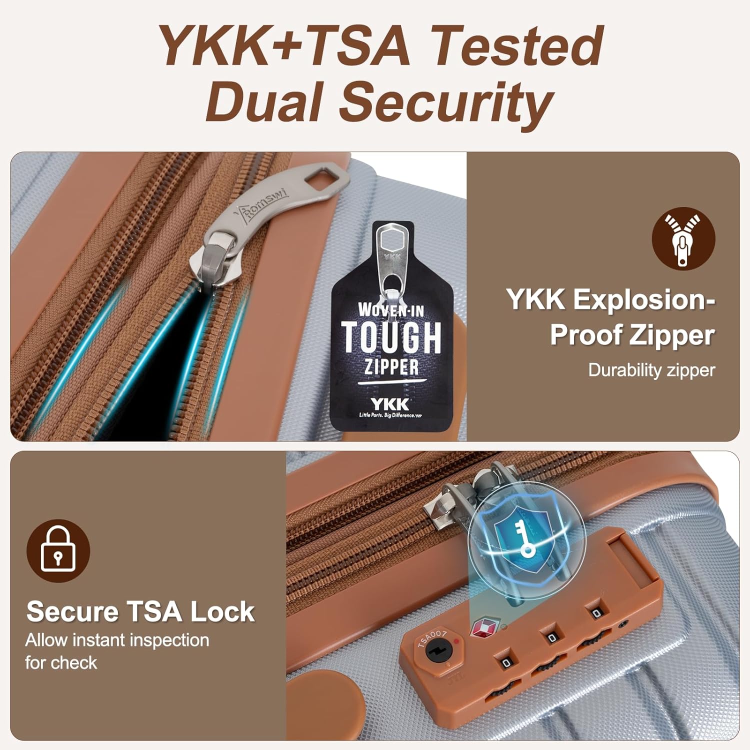 - TSA Lock and YKK Zipper: Travel Suitcase with TSA-approved dual locking system keeps luggage secured. Authentic YKK zippers come with superior durability and smooth operation.