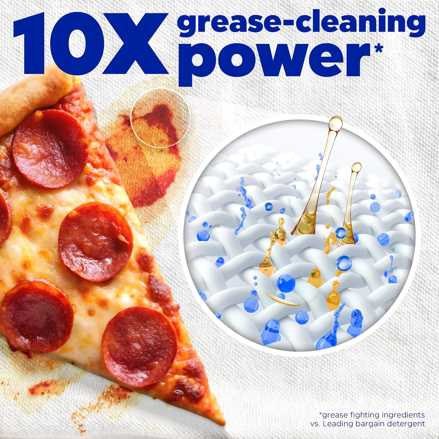 - Grease Cleaning Power: Tide laundry detergent has 10X the grease fighting ingredients versus leading bargain laundry detergent, for those tough to get out grease stains Tide liquid detergent has the power you need