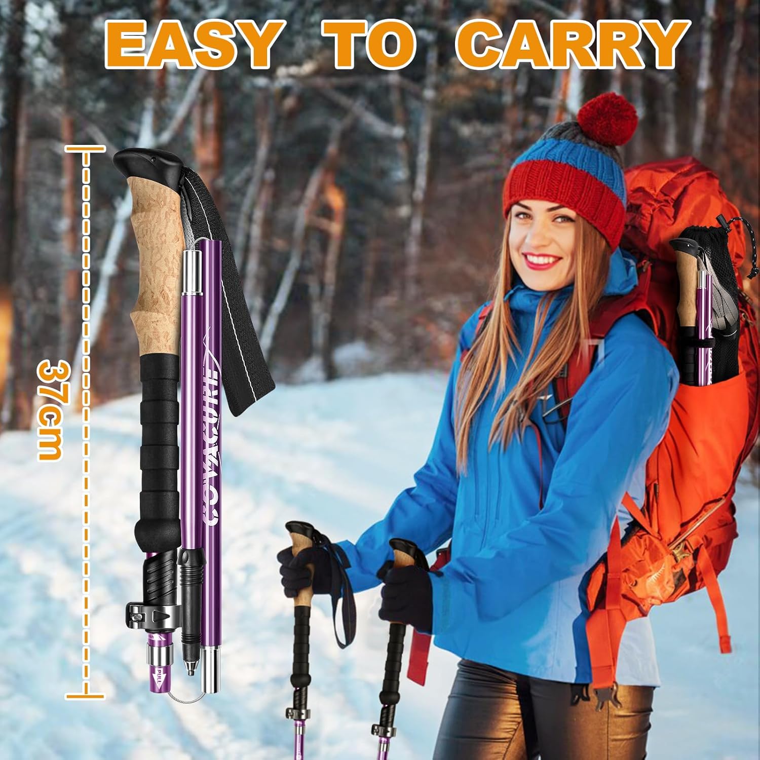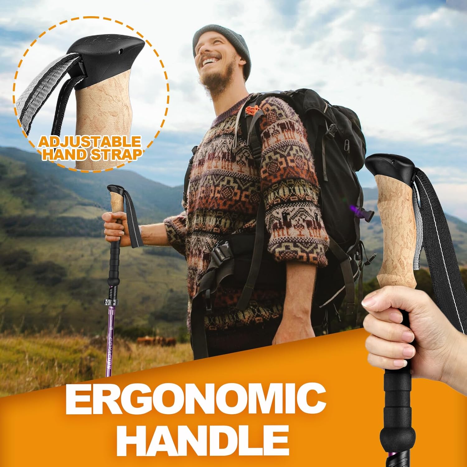 - 【Superior Strength and Durability】Our Trekking poles made from Aircraft Grade 7075 Aluminum, which withstands pressure and impacts better than carbon fiber. A surface treatment creates a protective coating against corrosion, which provides a high level of corrosion resistance. They provide excellent stability and built to withstand the toughest terrains.
