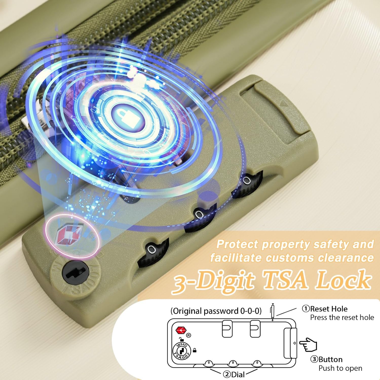 - [Hardshell Luggage Set] Designed to be lightweight and flexible, this 3 piece suitcase set is made from premium ABS material with 2 reinforced corner guards. It includes a 20" carry-on, 24" medium checked, and 28" large checked suitcase, ideal for stylish travel, business trips, weekend getaways, or family vacations.
