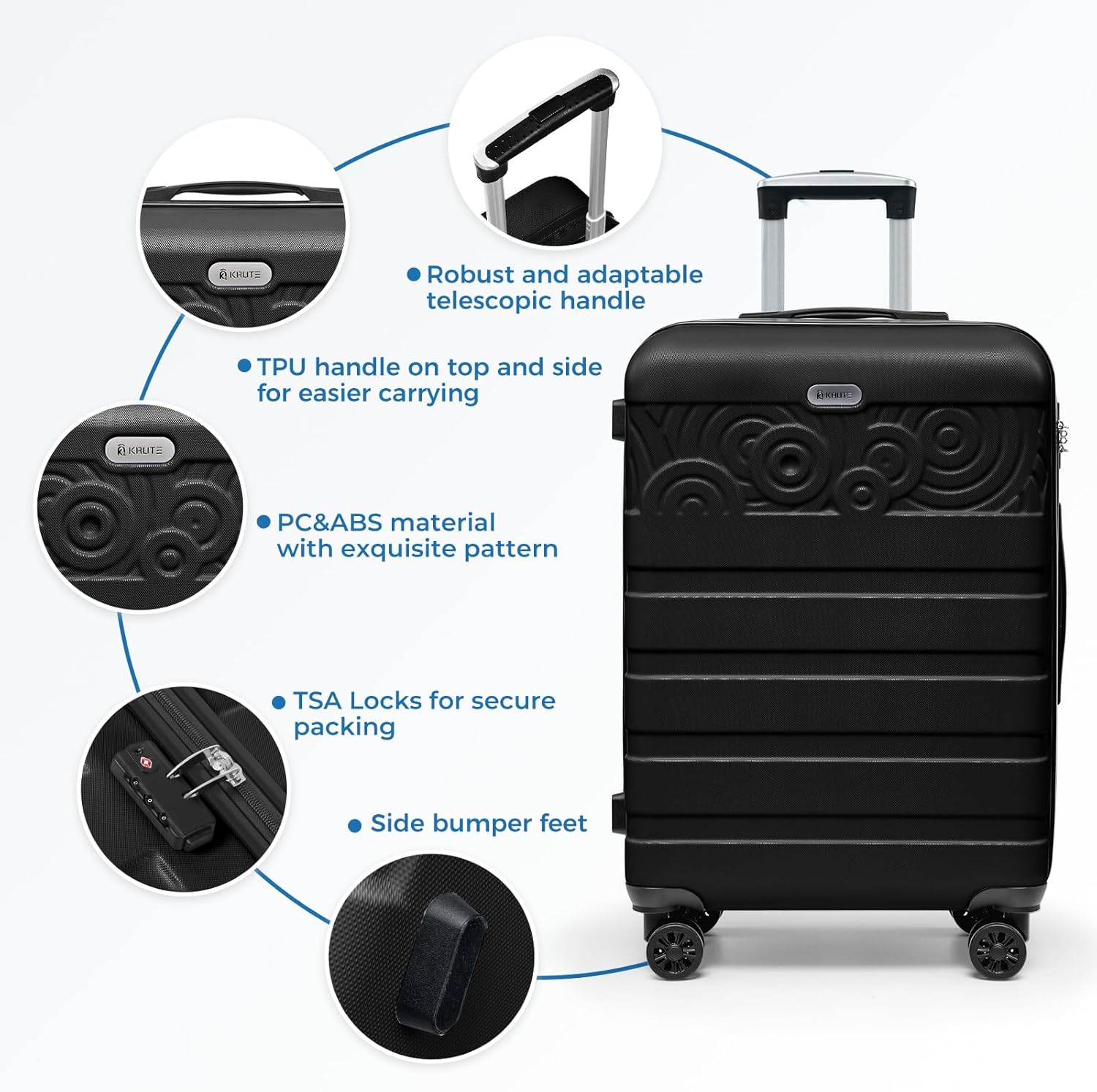 Krute Luggage 24 Inch Suitcases with Wheels Checked Lightweight PC ABS TSA Lock Hard Side Travel Suitcase