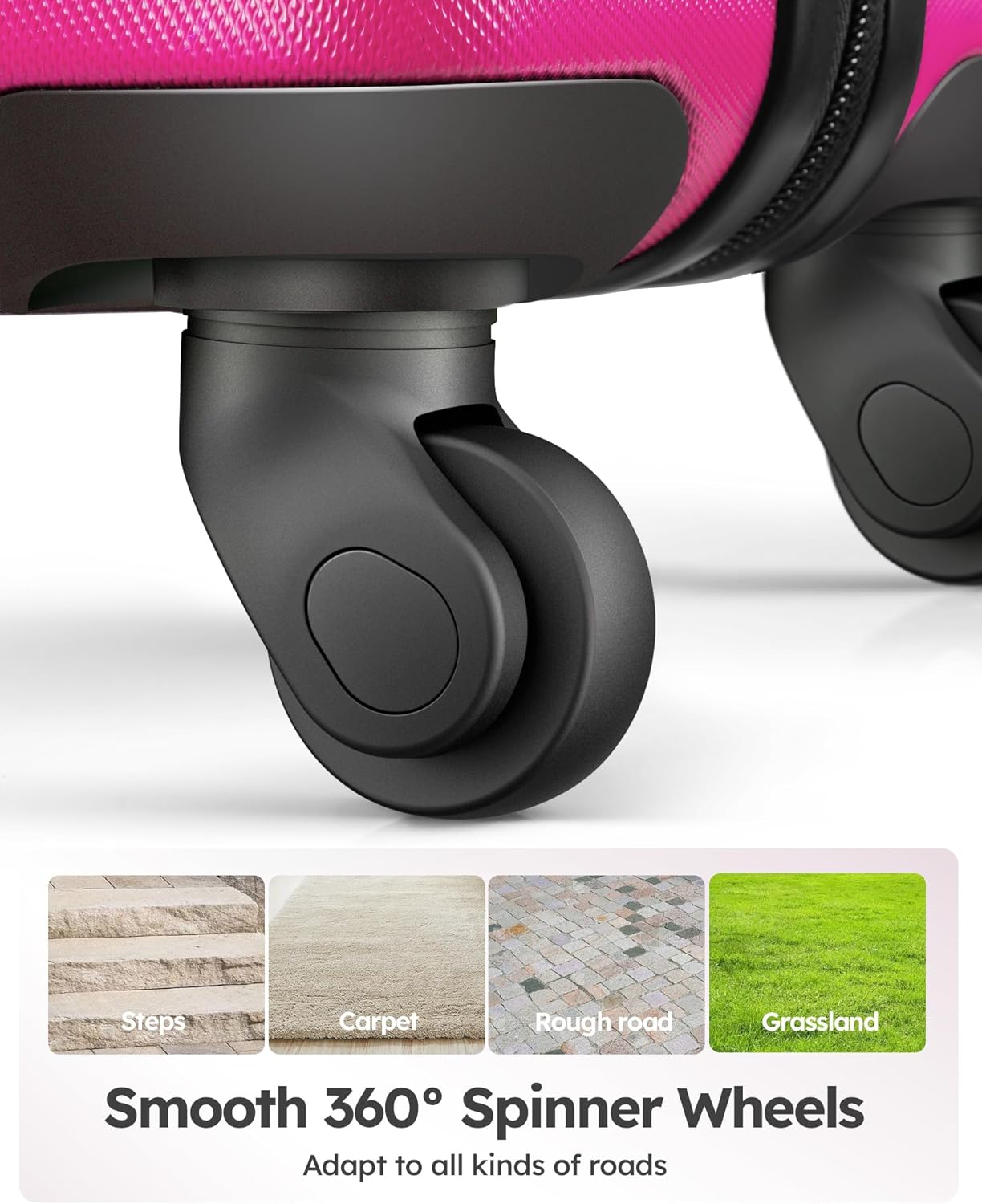 - Smooth Multi-directional Spinner Wheels:This durable suitcase set has high-quality 360°spinner wheels for easy maneuverability on various surfaces. It's been rigorously drop-tested to ensure contents remain secure during travel, making it a reliable and convenient choice for travelers