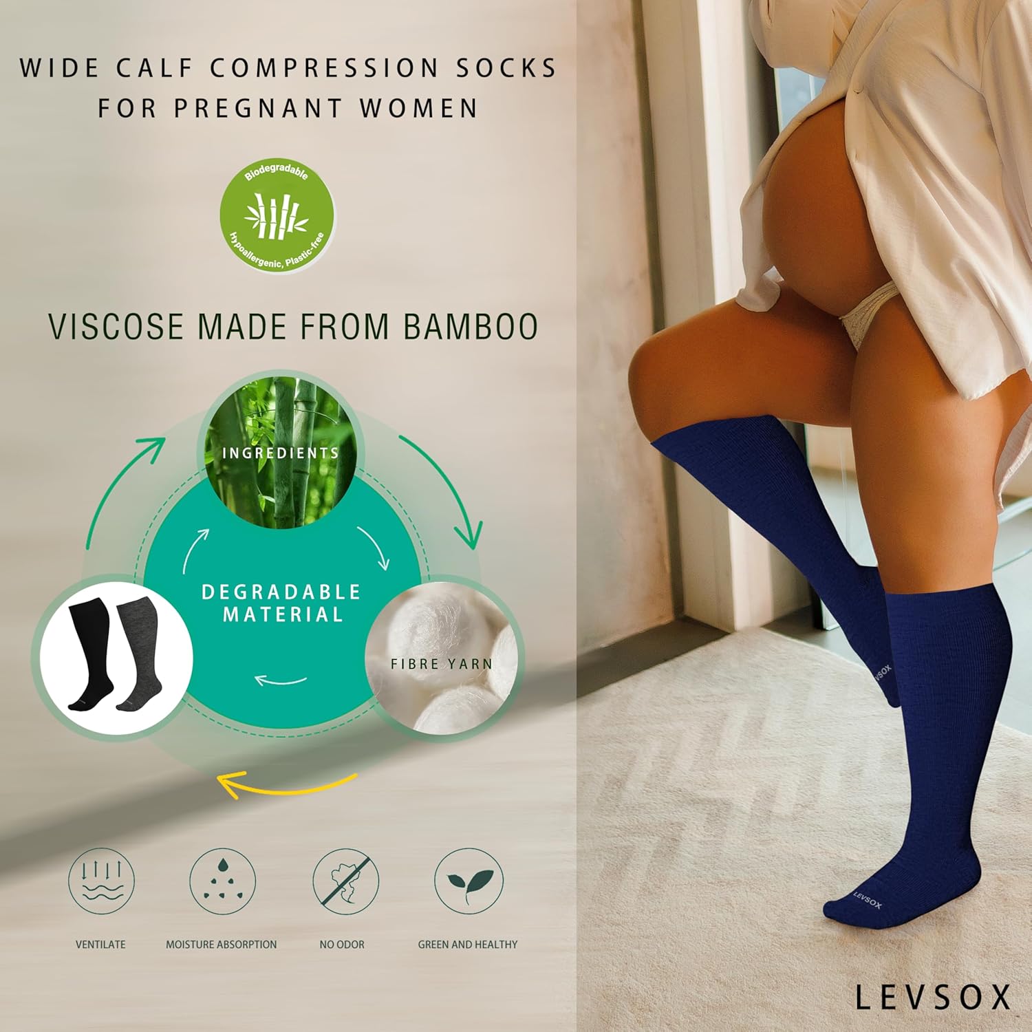 - Wide Calf Compression Socks: 3 pair compression socks for women & men plus size are made of bamboo viscose, a natural and skin-friendly material that is very soft and comfortable. Plus Size compression socks wide calf are an ideal choice for pregnant women, elderly people, nurse