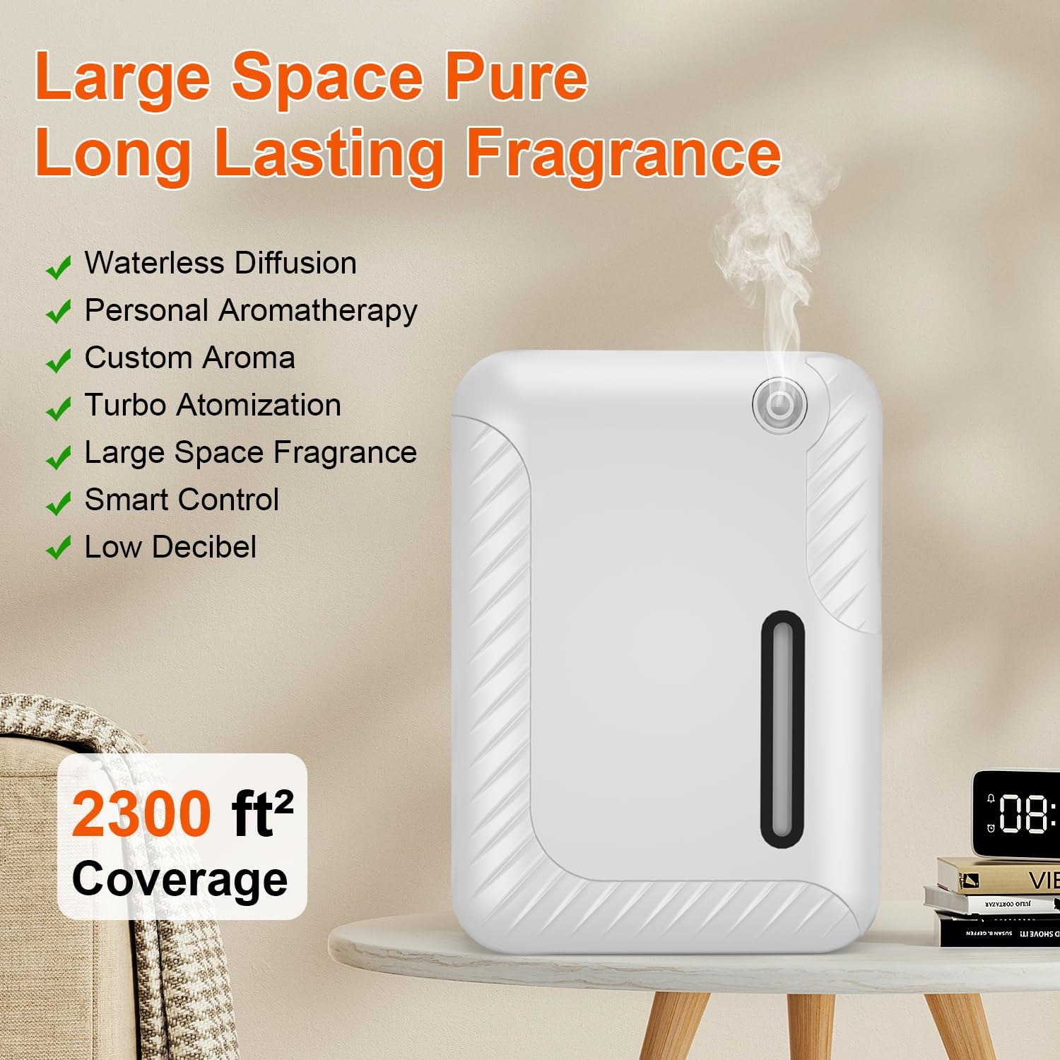 Smart Essential Oil Diffuser for Large Spaces, 250mL Capacity Covering 2300 sq.ft, Programmable Timer, for Home Office Commercial Aromatherapy, White