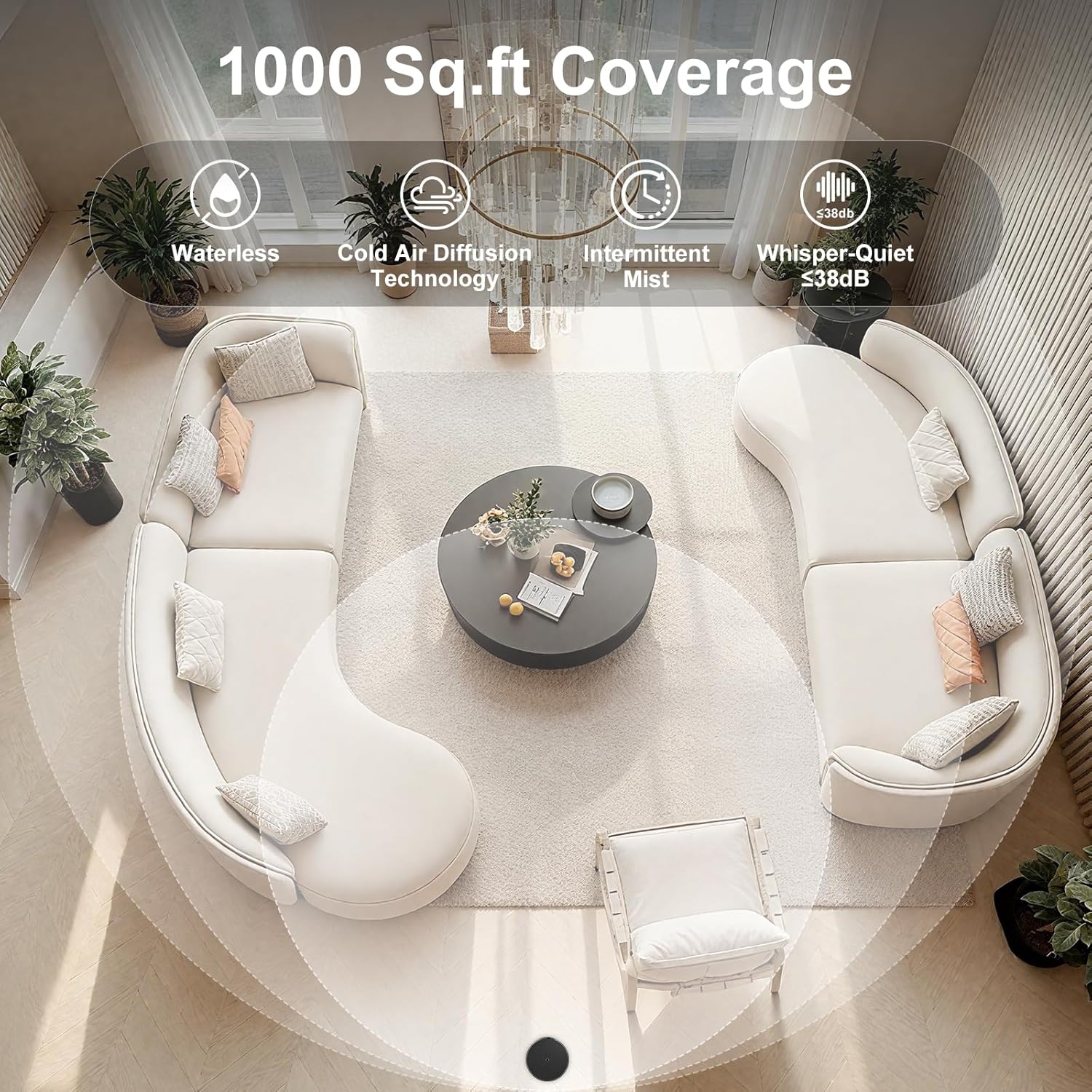- Powerful Coverage up to 1000 Sq Ft – Designed for large rooms, this scent diffuser is perfect for spaces such as living rooms, bedrooms, studies