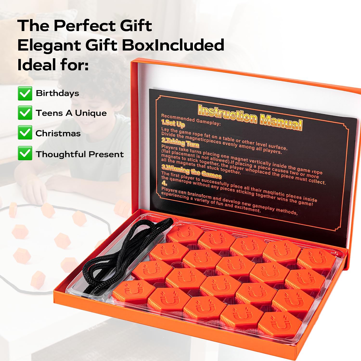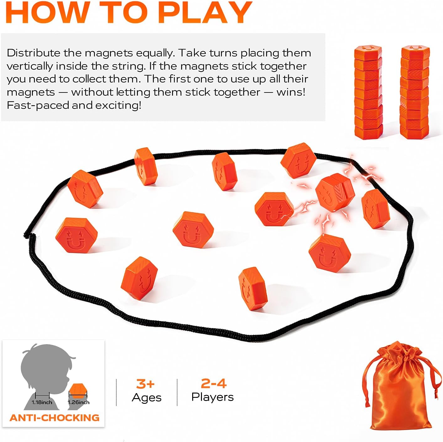 - 5. 👜 Complete Set with Silk Bag & Gift Box, Adventure-Ready! The complete set includes 20 magnetic pieces, a durable game string, a premium silk storage bag, and an elegant gift box—all designed for easy storage and portability. As the ultimate family travel game, it’s ready for your next camping trip, road trip, or family party, ensuring fun is always within reach.