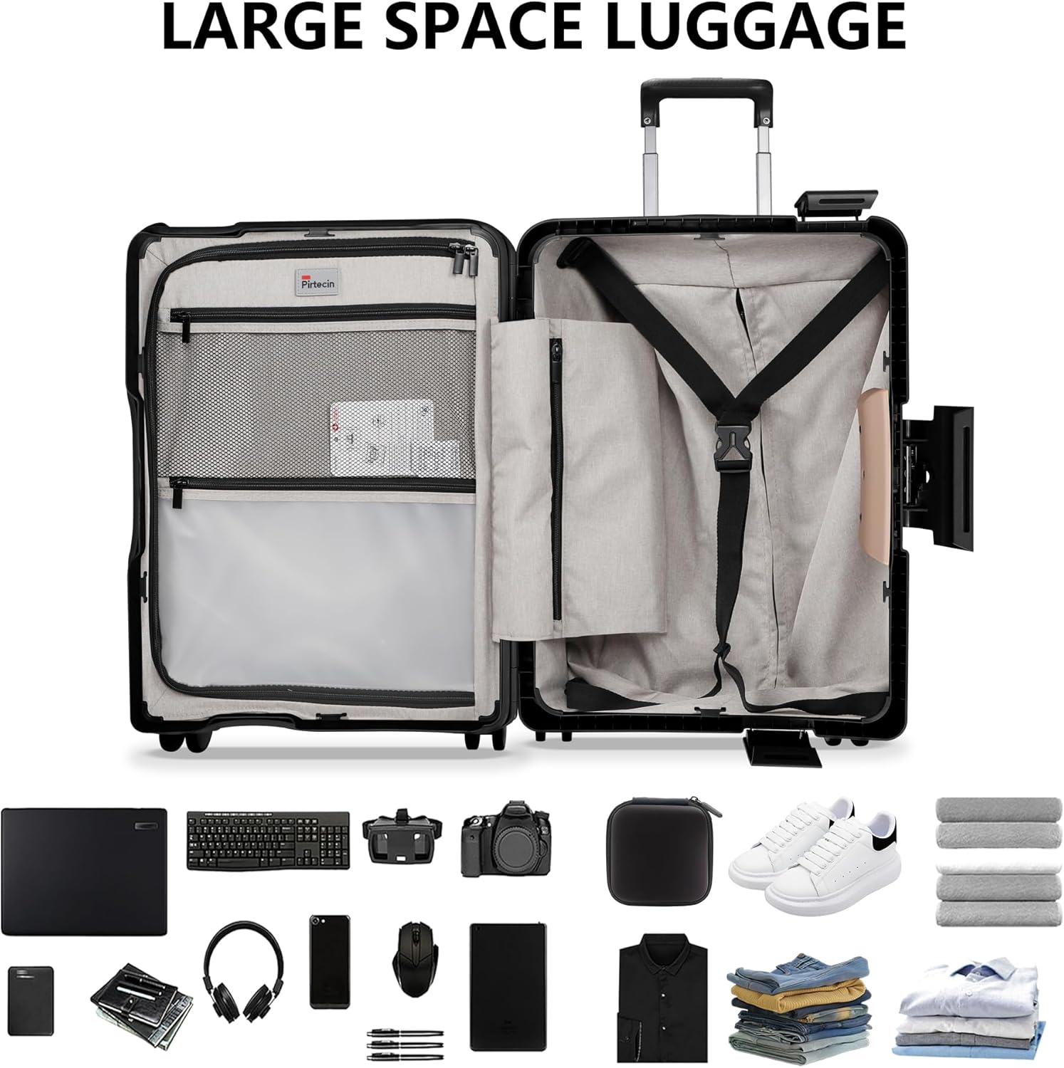 - 28-Inch Large Checked Luggage: The Pirtecin 28-inch luggage, sized 30"×20"×12.8", offers abundant space for long trips. Weighing only 12.5 pounds, it meets airline check-in standards and is lightweight for easy handling.