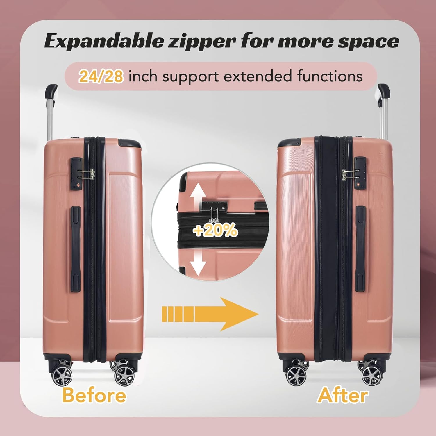 • Expandable Luggage: The 28inch suitcase expands by 20% to provide extra packing space, making it easy to store additional clothes, souvenirs, or travel essentials. When needed, simply unzip the expansion zipper for extra room.