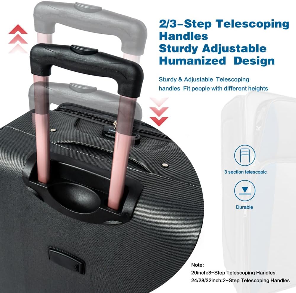 - [Complete 4-Piece Luggage Set] : This premium luggage set includes 20-inch, 24-inch, 28-inch, and 32-inch suitcases designed for every travel need - from quick business trips to extended family vacations. Combining style with functionality, this versatile collection meets all your travel requirements.