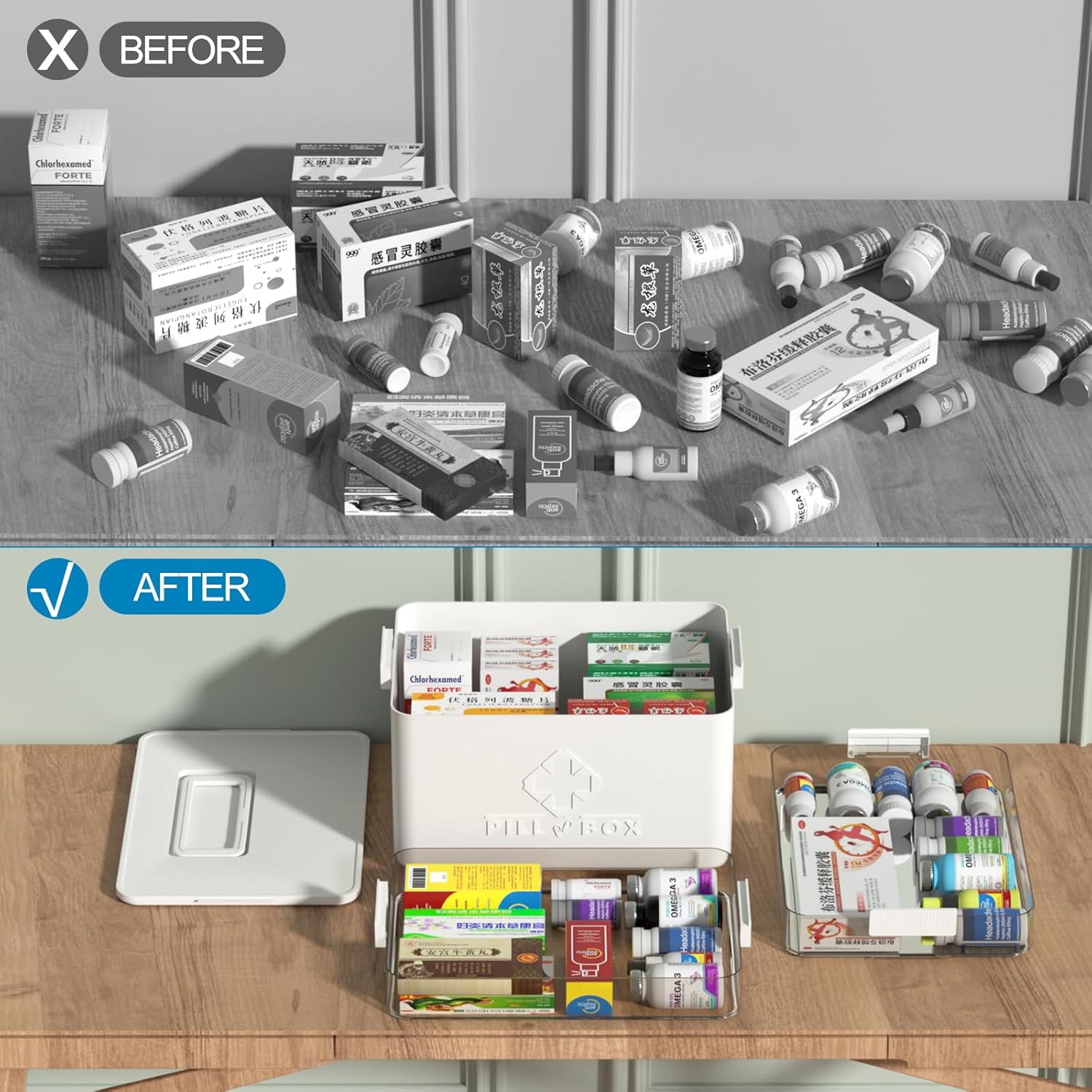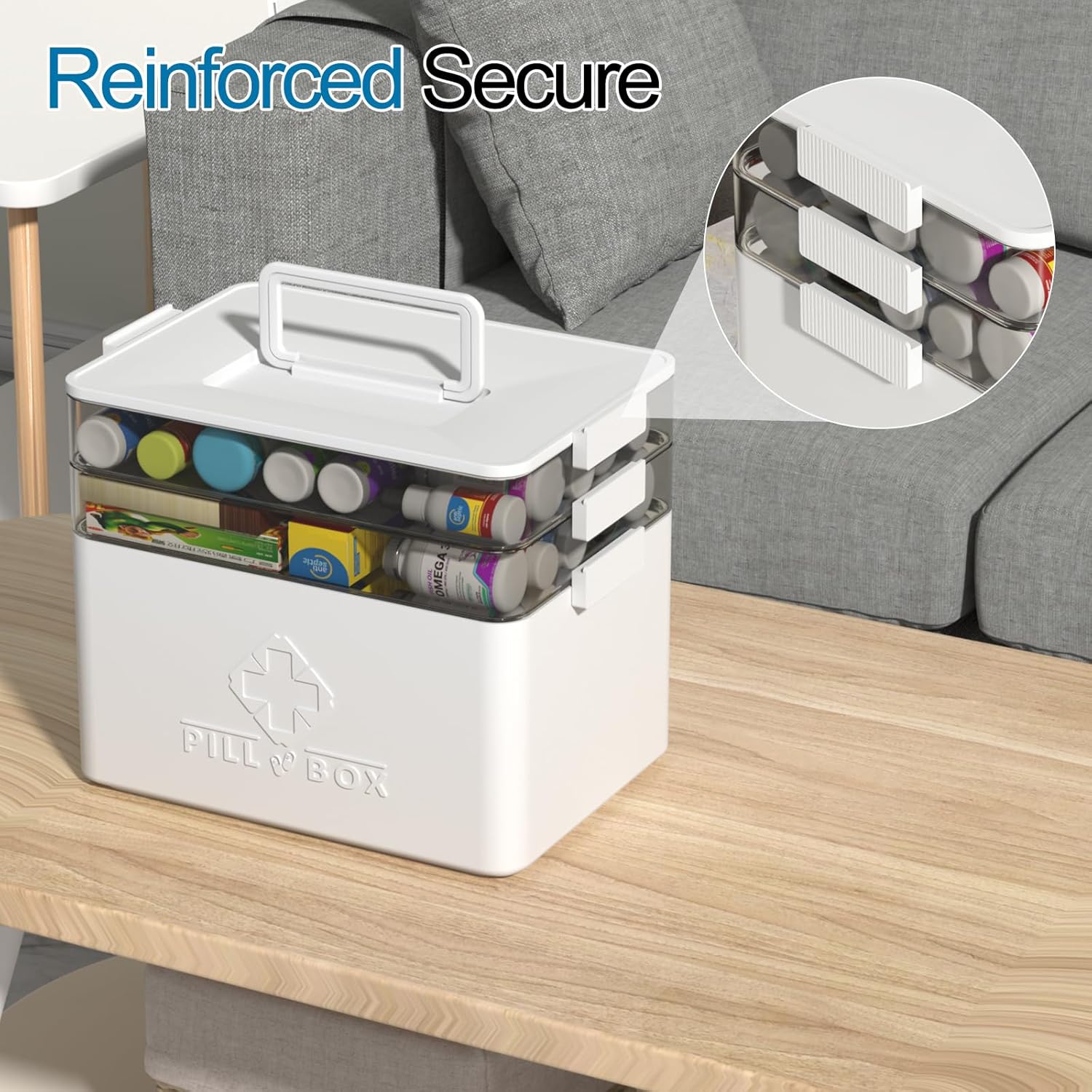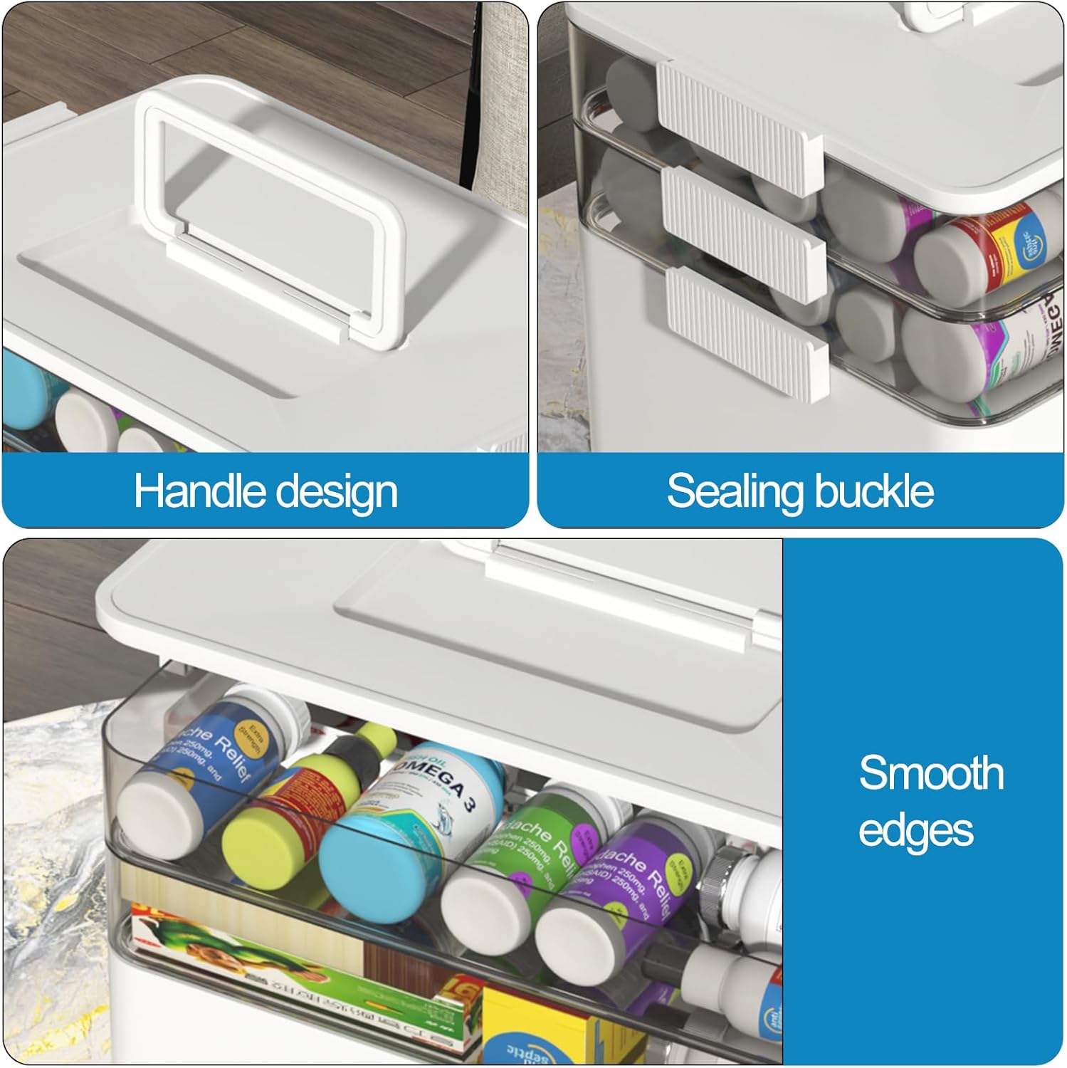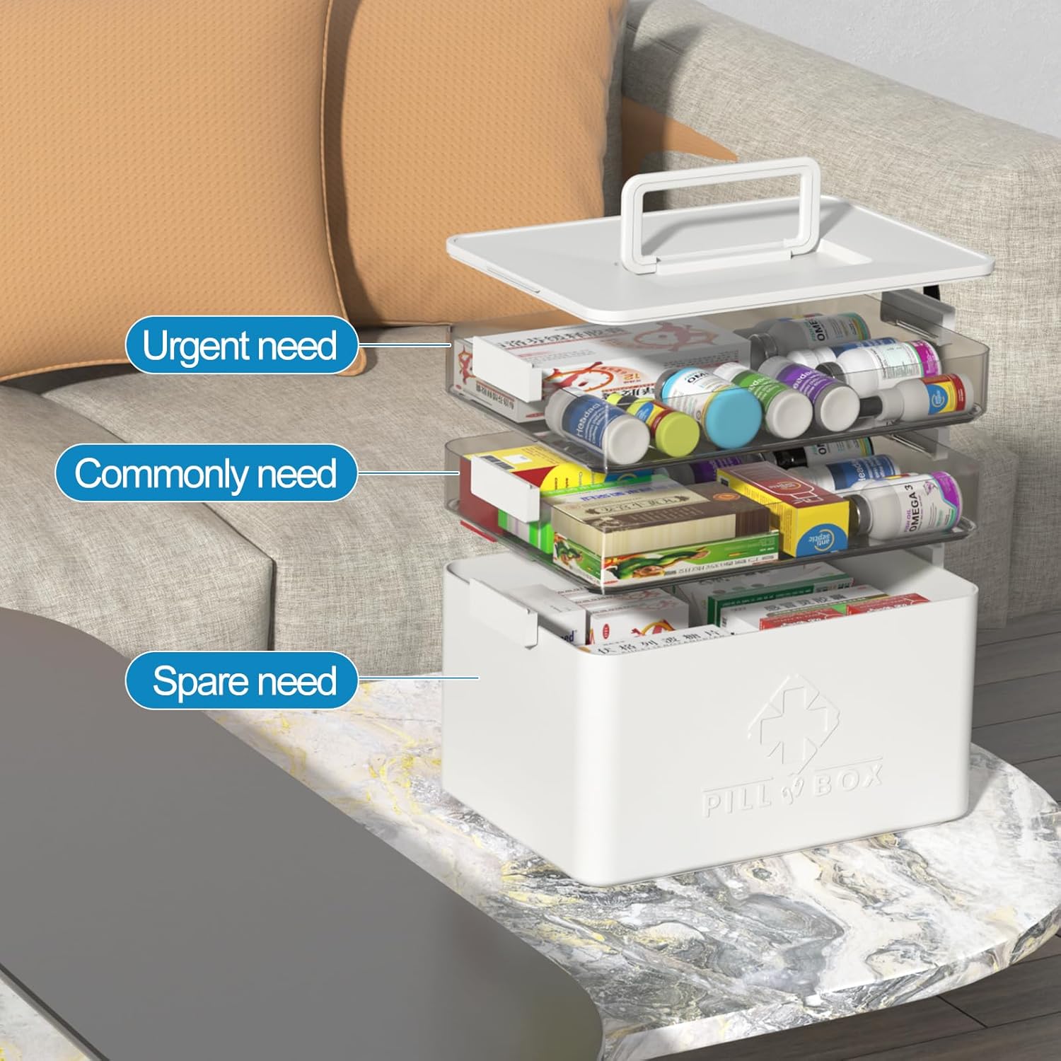 Morcte 3-Tier Medicine Organizer, Portable Medicine Cabinet with Handle, Empty First Aid Kit for Home/Travel