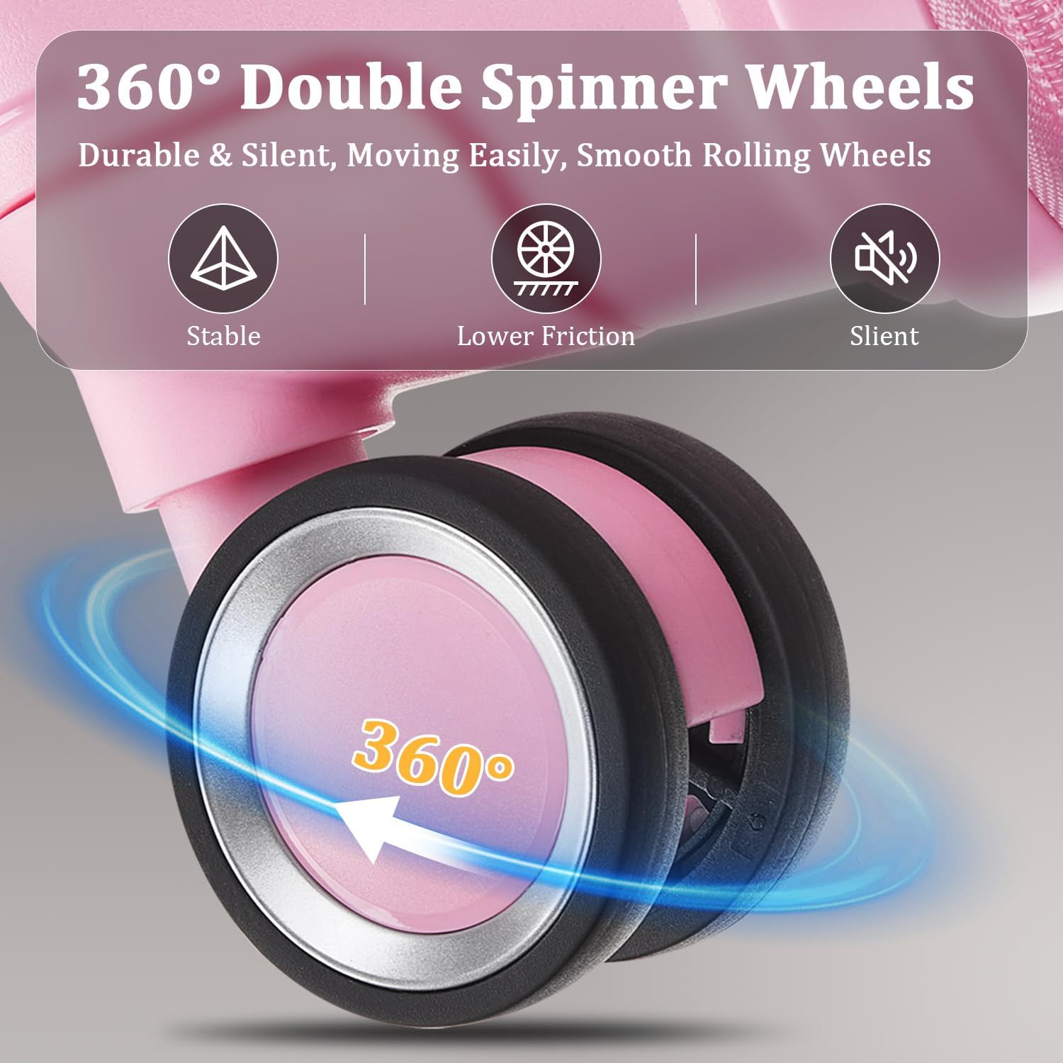 - Silent 360° Spinner Wheels: Double spinner wheels rotate smoothly on tile, asphalt, and carpet. Noise reduction tech makes them 50% quieter than basic single-wheel designs – no more loud rattling in airports.