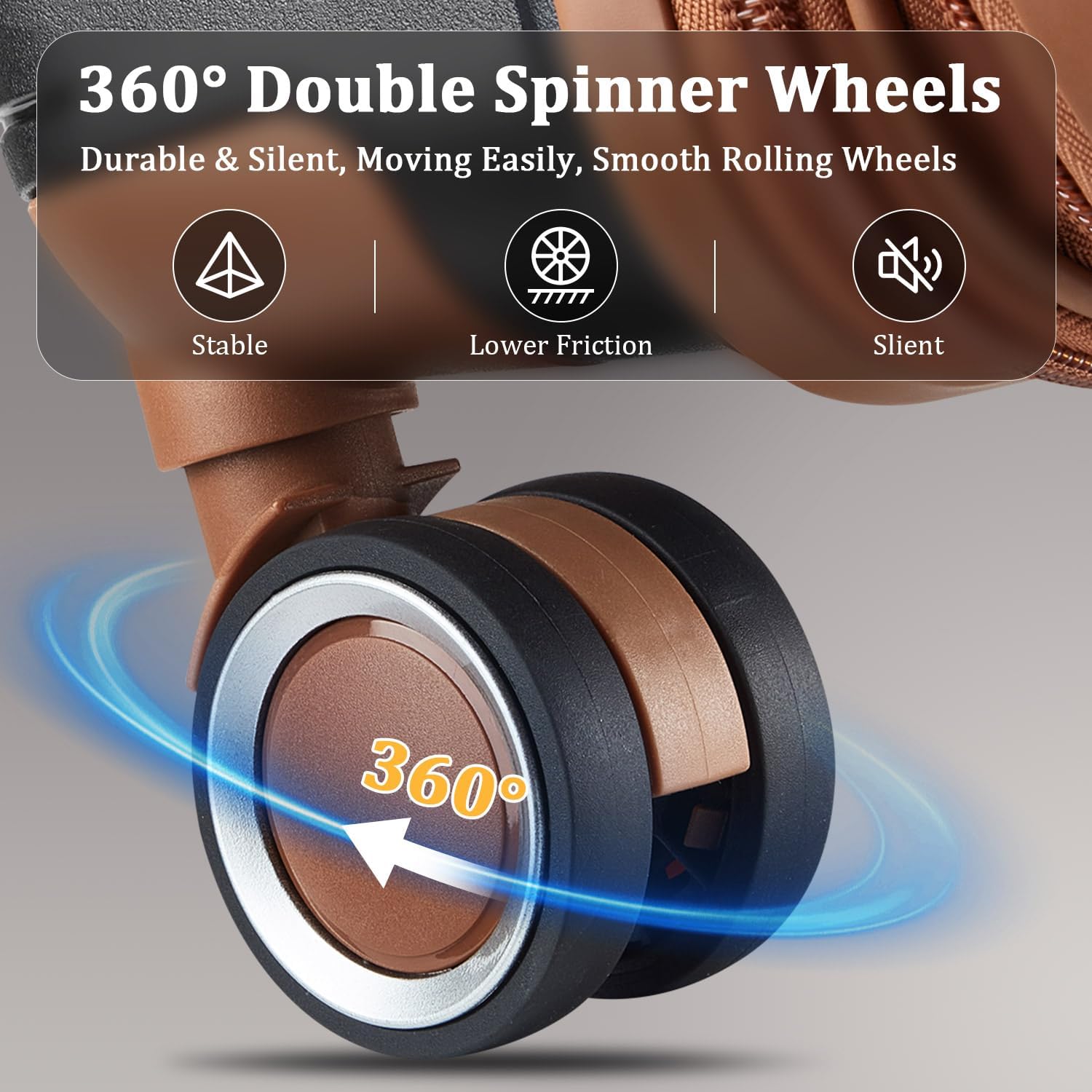 - Silent 360° Spinner Wheels: Double spinner wheels rotate smoothly on tile, asphalt, and carpet. Noise reduction tech makes them 50% quieter than basic single-wheel designs – no more loud rattling in airports.