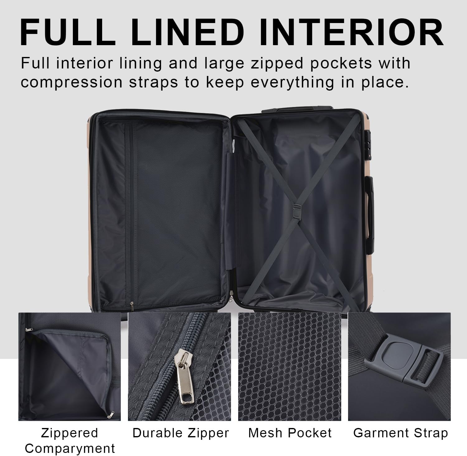 - 【ABS Hard Shell Luggage】Suitcase material has excellent wear resistance and impact resistance, and is lightweight. Durable luggage can withstand transportation and keep your belongings safe. Lightweight luggage makes traveling effortless and enjoyable.