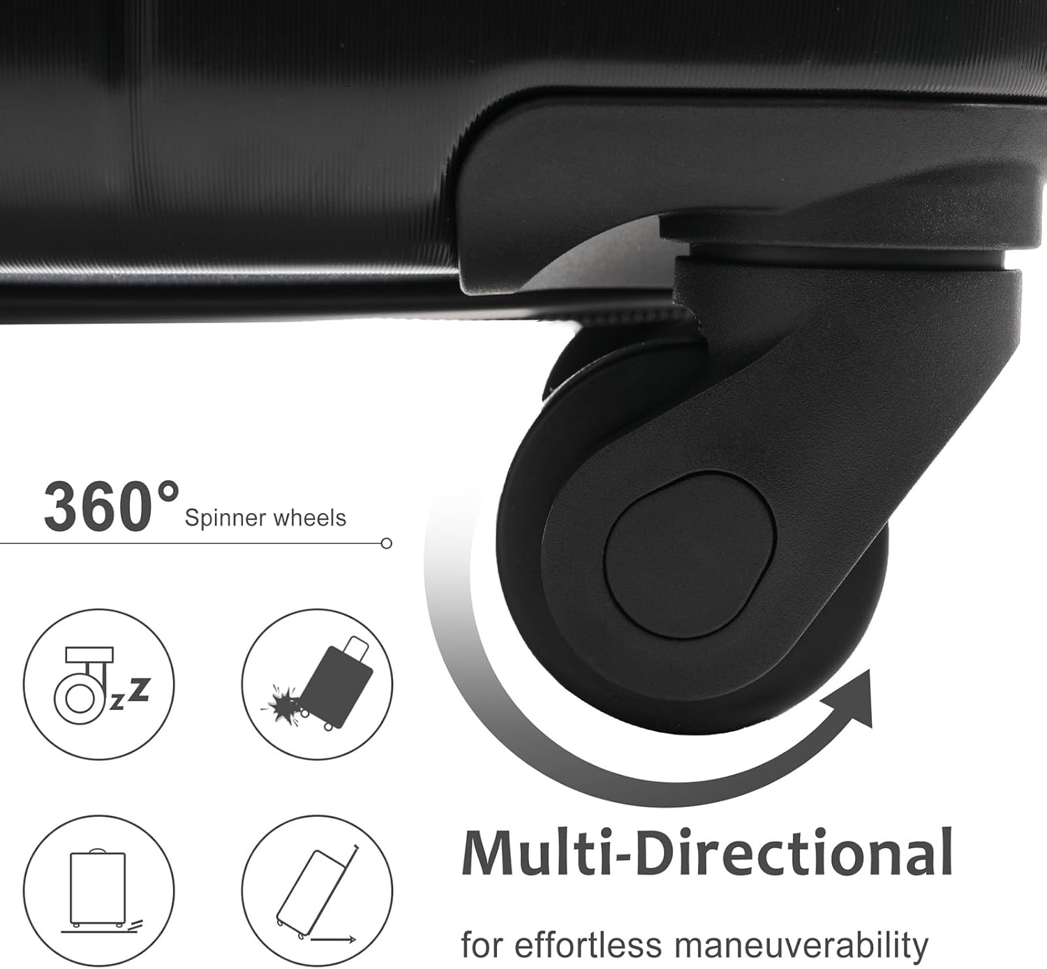 20in Carry On Luggage Hardshell Suitcase with Spinner Wheels Lightweight Lugagge Design Waterproof Durable for Travel (Black)