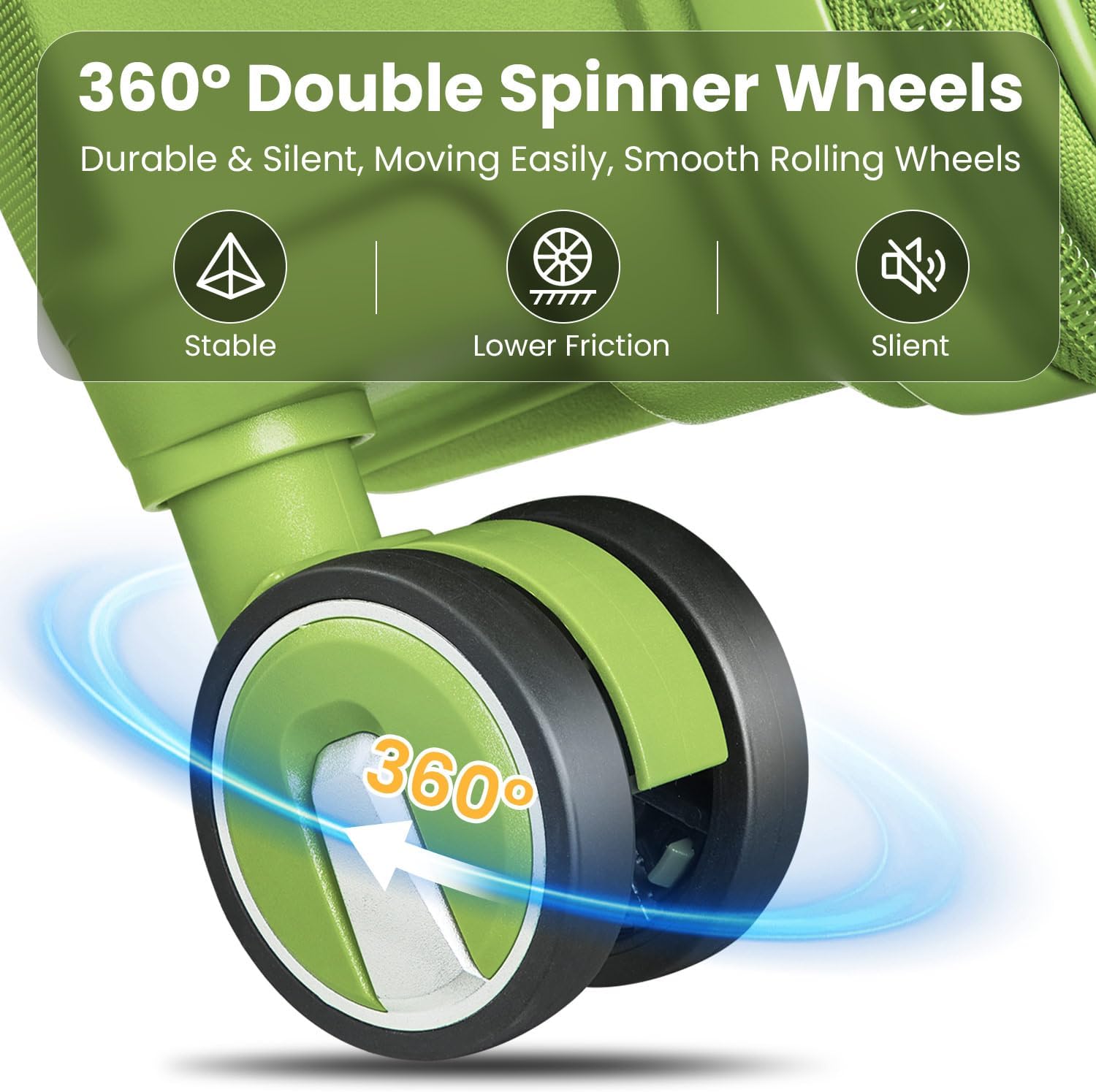 - Silent 360° Spinner Wheels: Double spinner wheels rotate smoothly on tile, asphalt, and carpet. Noise reduction tech makes them 50% quieter than basic single-wheel designs – no more loud rattling in airports.