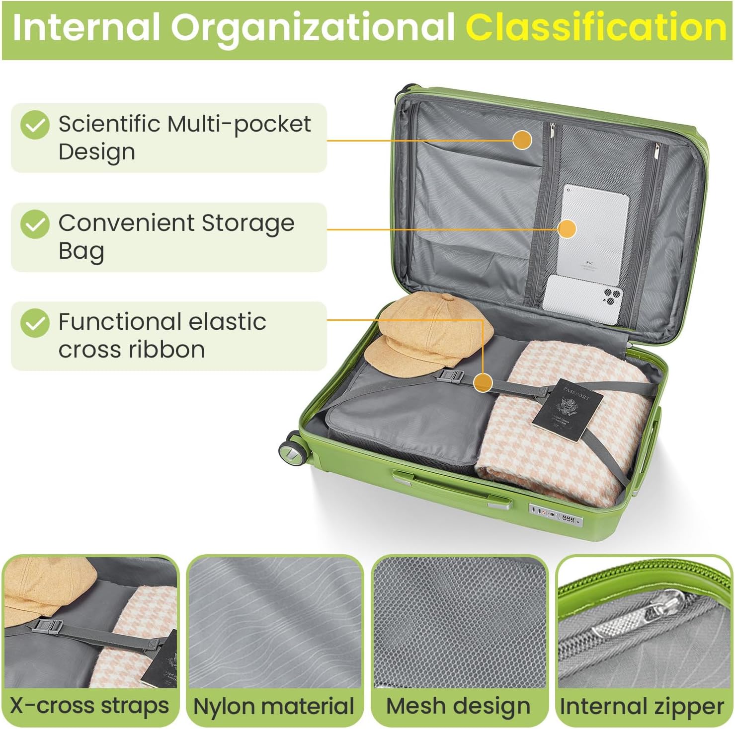 - TSA Locks and Military-Grade Security: TSA-approved combination locks allow agents to inspect without breakage. Reinforced with double-layered anti-burst zippers and scratch-resistant textured PP shells to protect valuables in transit.