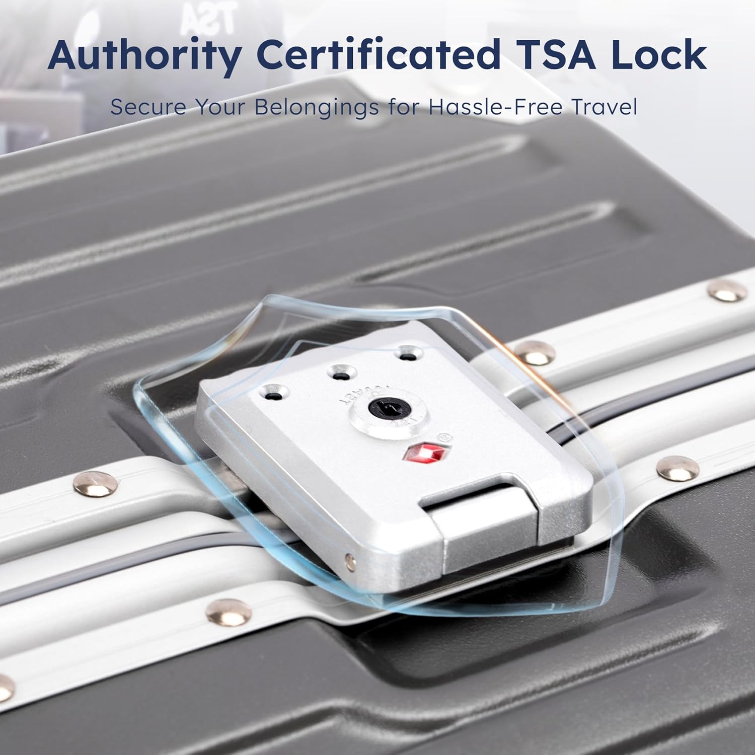 - Premium PC + Aluminum Frame Materials: This combination is remarkably lightweight yet reinforced to resist warping. Four sturdy aluminum corner guards absorb impact from rough handling during transit. Our high-quality aluminum telescopic handle ensures a smooth, reliable pull and significantly reduces the risk of breaking. With near-metallic sheen panels and a frame that are 22% thicker than standard, your valuables are perfectly protected, elevating your entire travel experience