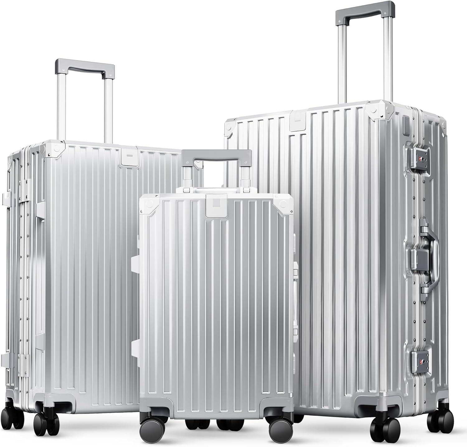 - Premium PC + Aluminum Frame Materials: This combination is remarkably lightweight yet reinforced to resist warping. Four sturdy aluminum corner guards absorb impact from rough handling during transit. Our high-quality aluminum telescopic handle ensures a smooth, reliable pull and significantly reduces the risk of breaking. With near-metallic sheen panels and a frame that are 22% thicker than standard, your valuables are perfectly protected, elevating your entire travel experience
