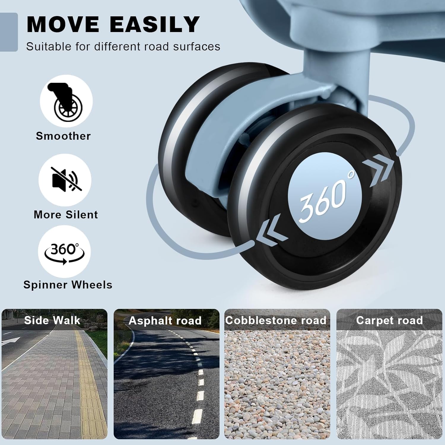 - Dual Spinner Wheels: The zipperless luggage is equipped with 4 dual silent spinner wheels, smooth and easy gliding. In addition, the 360° spinner wheels can be easily rotated in any direction, forward or backward, to ease your burden of movement.