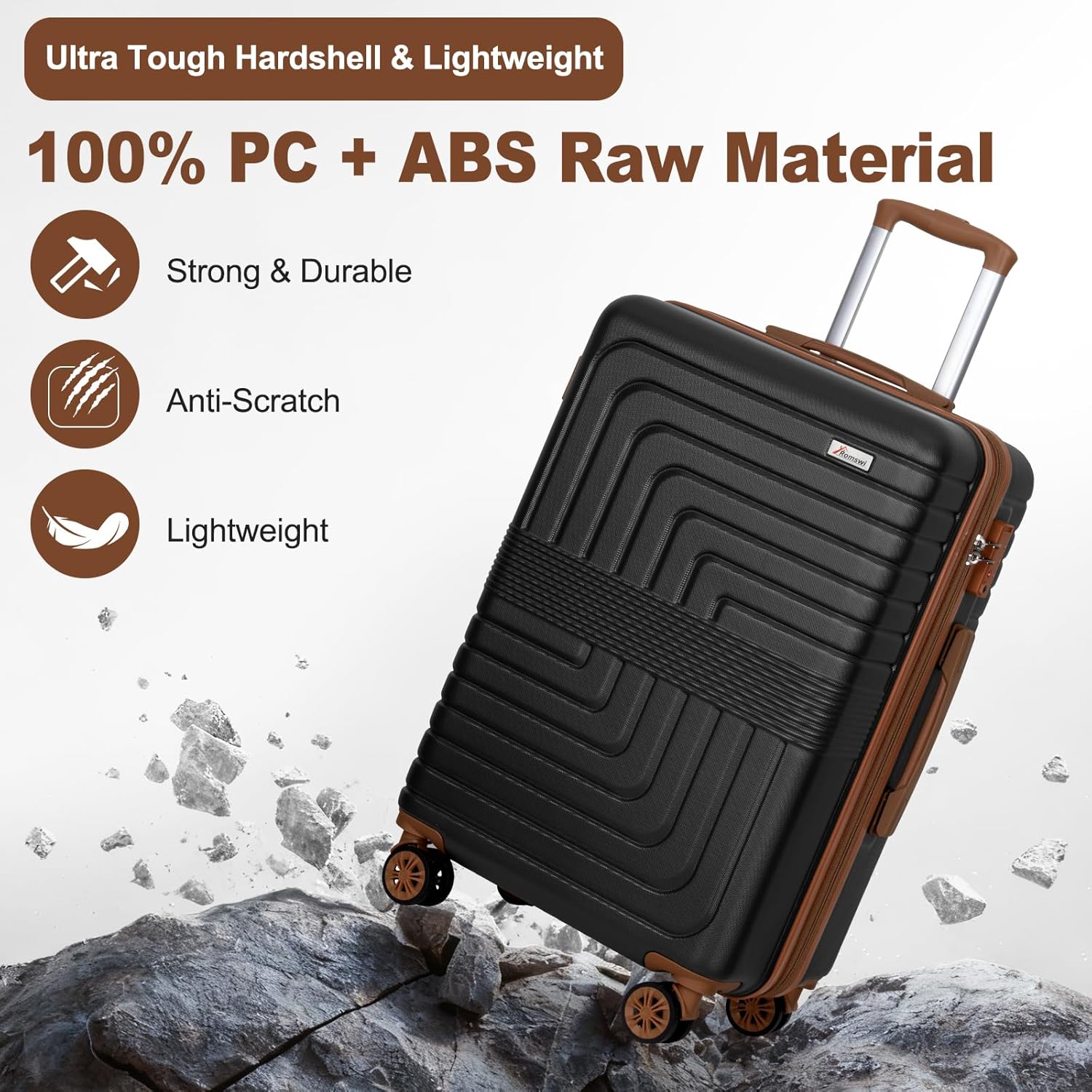 Romswi 3-Piece Luggage Set 22/24/28 Inch, Expandable Hardshell Suitcases with TSA Lock, Lightweight PC+ABS Spinner Wheel Checked & Carry On Luggage, Black