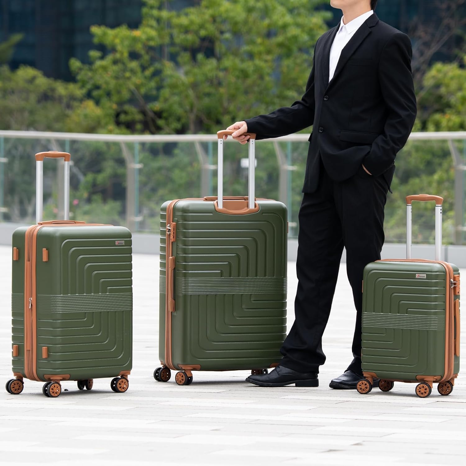 Romswi 3-Piece Luggage Set 22/24/28 Inch, Expandable Hardshell Suitcases with TSA Lock, Lightweight PC+ABS Spinner Wheel Checked & Carry On Luggage, Olive Green