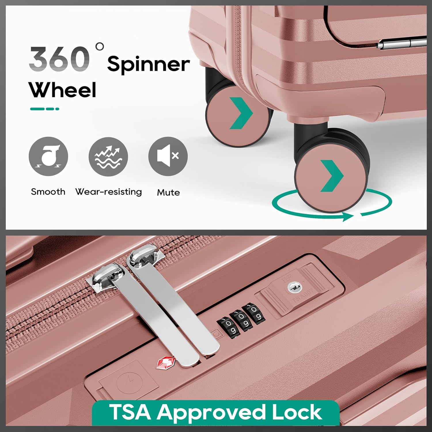 - TSA Lock & Silent Wheels: TSA-approved combination lock keeps your valuables safe while traveling. Features a 360° silent swivel wheel design that glides easily through airports and busy streets for a smooth travel experience.