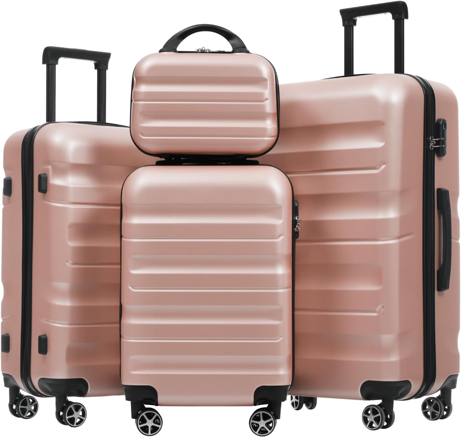 Merax Luggage Set 4 Piece, Hardshell ABS Suitcases with 8 Silent Spinner Wheels, Durable and Lightweight Travel Luggage for Family Trips